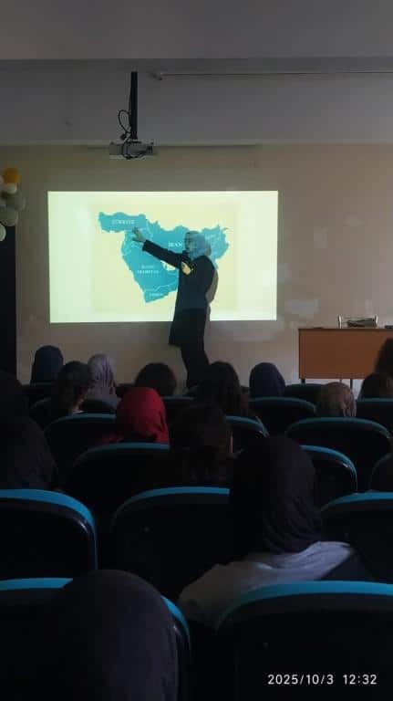 Bizlere Filistin'de yapmış olduğu stajdan yaşadıklarını anlatan Fatmanur hanım bu konu ile ilgili tüm yasanmişliklari büyük bir samimiyetle öğrencilerimize anlattı..zulmün başlangıcından bugüne kadar Filistin'i anlatan Fatmanur hanım zulmü farklı başlıklarla değerlendirdi ve öğrencilerimize boykotla ilgili bilgiler verdi.